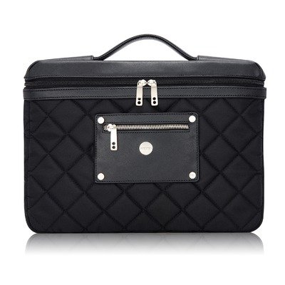 - Lightweight quilted nylon with Safianno trim exterior and silver hardware.