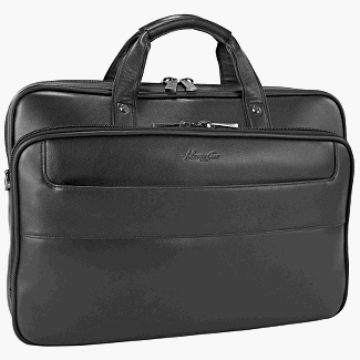 Dimensions - 12.5 x 17.5 x 4 inchesConstructed of leather Removable adjustable and padded shoulder strap Convenient top handles Easy access hidden front exterior zipper pocket Exterior has a zipper pocket and an attacher strap that fits over most upright luggage handles Fully lined interior Main compartment includes a padded computer pocket and 2 padded accessory pocketsFront exterior gusseted zipper pocket includes an organizer featuring one zipper pocket cell phone pocket card pockets pen holders calculator pocket and 3 disk pockets