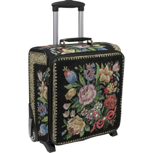 - Beautiful flowershop tapestry Rolling suitcase with handbeaded details. Perfect size carrry-on luggage for traveling.